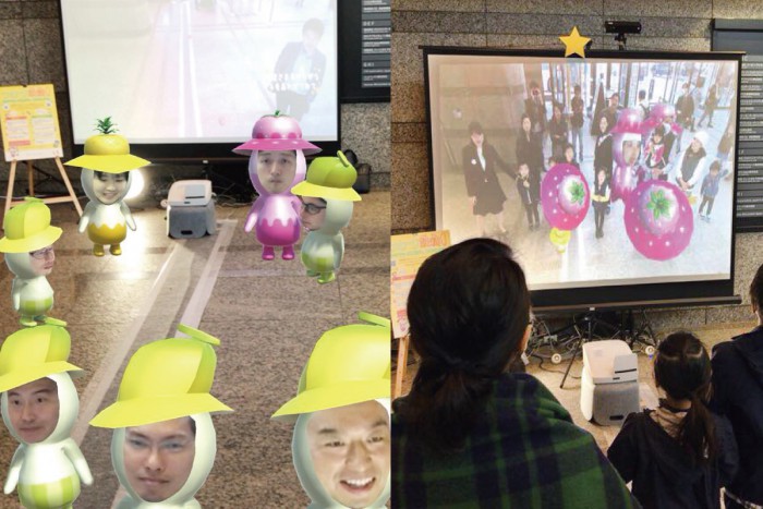 人の顔をリアルタイムで3D 検出し、自分の顔をした妖精が画面に出現するAR 体験コンテンツ。現れた妖精とコミュニケーションをとったり、スマートフォンに入れて持ち帰ったりすることもできます。さくらまつりにむけた、さくらVer. をお届けいたします。
